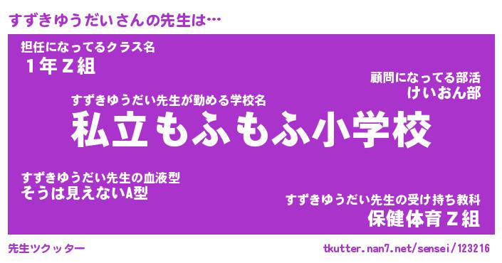 | ポケモン風あだ名 | 『スズチュウ』『スズキダネ』 |