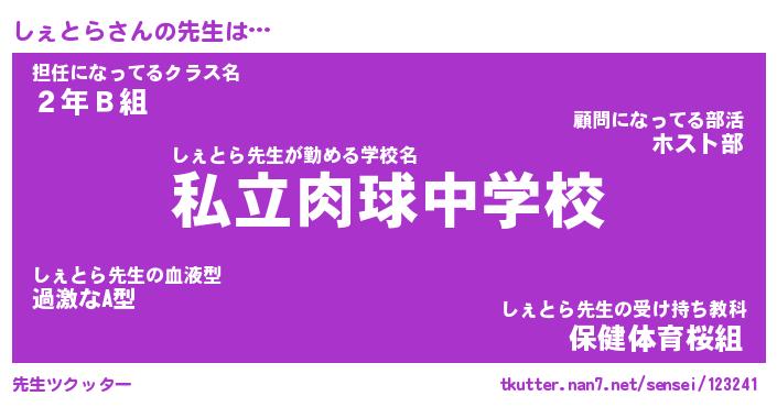 | 意味不明あだ名 | 『ペロリンしぇとら』『永久保存しぇとら』 |