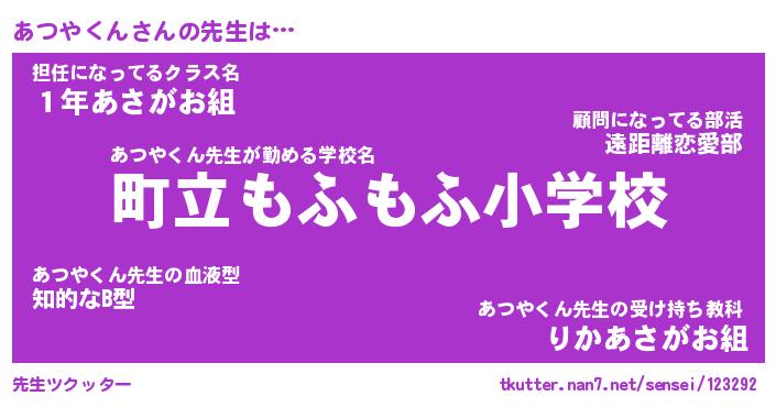 | ファンタジー風あだ名 | 『アツフェル』『エターナルアツヤクンー』 |