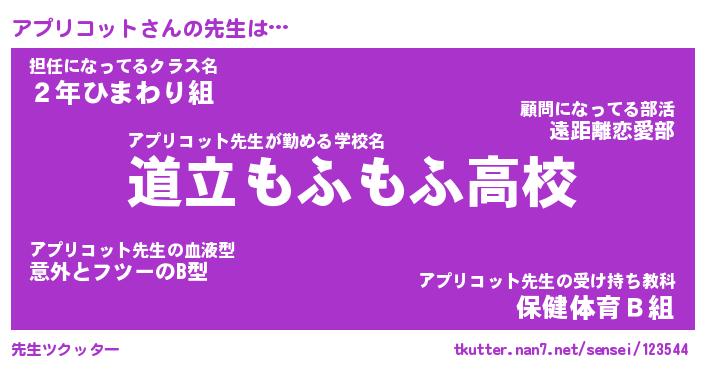 | ヒーロー風カッコイイあだ名 | 『スーパーアプリコット』『炎刃騎士アプ』 |