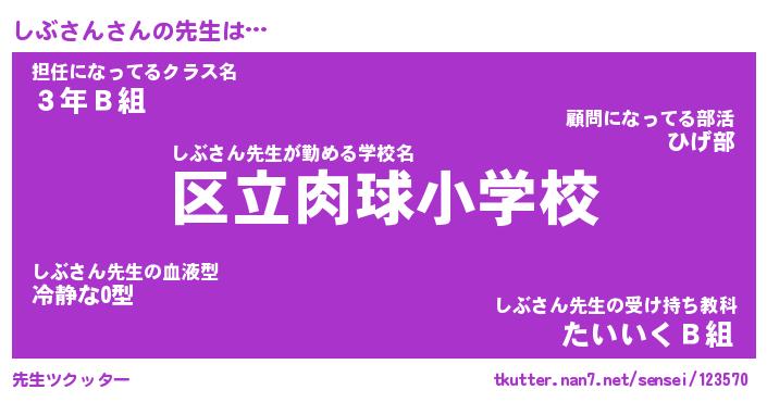 | ヒーロー風カッコイイあだ名 | 『スーパーシブサン』『天弓騎士シブ』 |