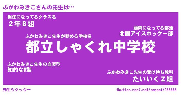 | ヒーロー風カッコイイあだ名 | 『スーパーフカワミキコ』『魔戒騎士フカ』 |