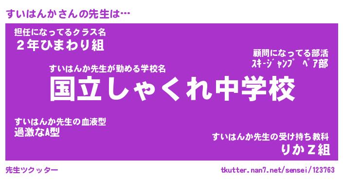 | ヒーロー風カッコイイあだ名 | 『スーパースイハンカ』『銀牙騎士スイ』 |