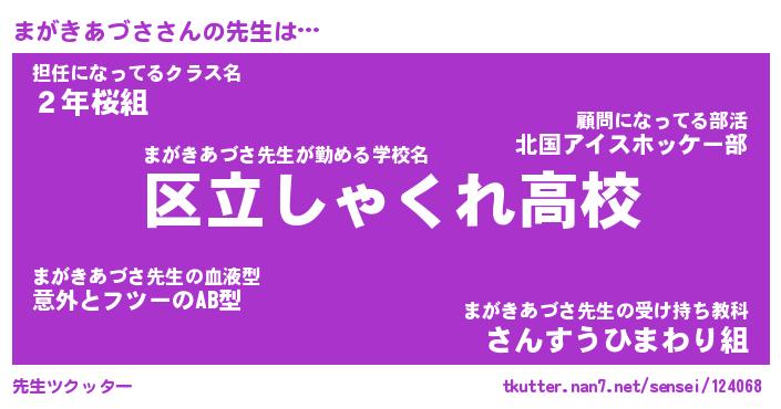 | 肩書あだ名 | 『まがきあづさ御曹司』 |