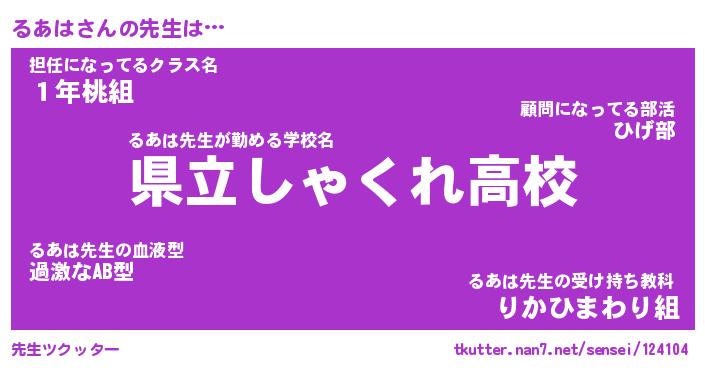 | ヘコむあだ名 | 『るあっふぃ~』『牛乳』『るあ太郎』 |