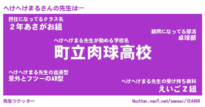 | ヒーロー風カッコイイあだ名 | 『スーパーヘケヘケマル』『銀牙騎士ヘケ』 |