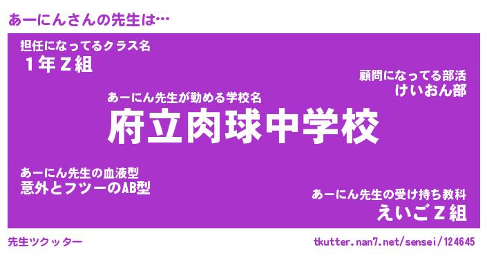 | 意味不明あだ名 | 『ペロリンあーにん』『永久保存あーにん』 |