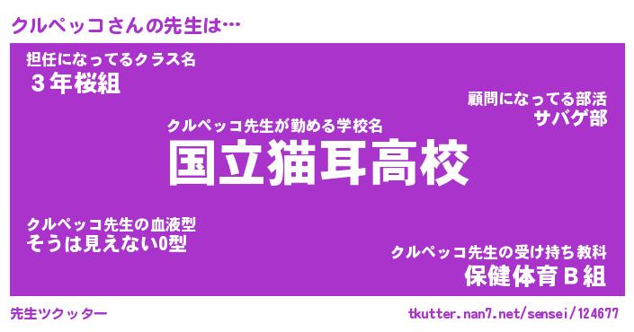 | ファンタジー風あだ名 | 『クルフェル』『エターナルクルペッコー』 |