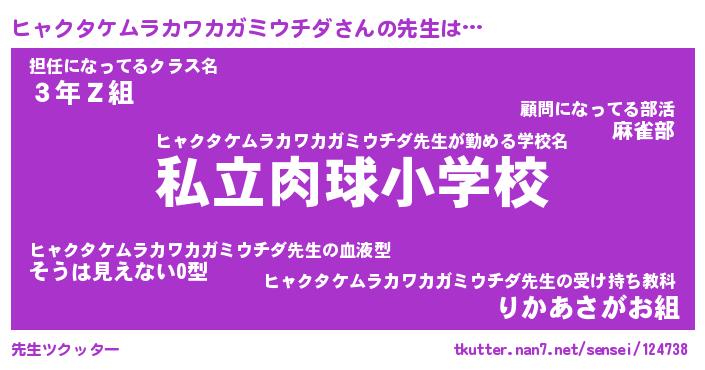 | 意味不明あだ名 | 『ペロリンヒャクタケムラカワカガミウチダ』 |