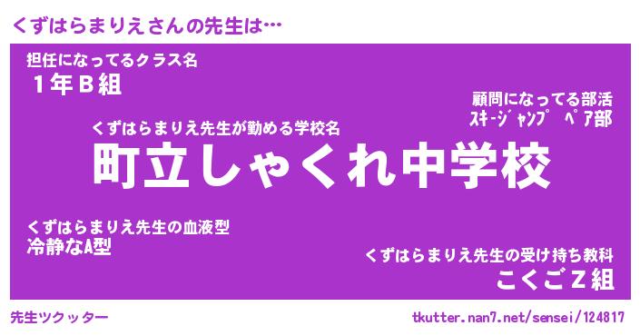 | 恥ずかしいあだ名 | 『プリティーくずはらまりえ』『くずちん』 |