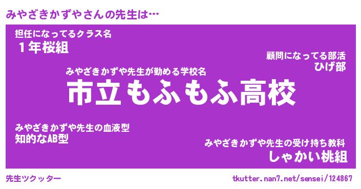 | ヘコむあだ名 | 『みやにゅー』『つくし』 |