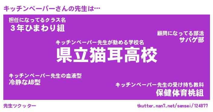| 男性向けラノベタイトル風あだ名 | 『キッチンペーパーの憂鬱』 |