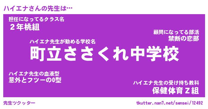 | 意味不明あだ名 | 『ペロリンハイエナ』『永久保存ハイエナ』 |