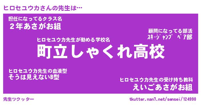 | ヒーロー風カッコイイあだ名 | 『スーパーヒロセユウカ』『幻影騎士ヒロ』 |