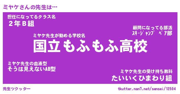 | ポケモン風あだ名 | 『ミヤチュウ』『ミヤケダネ』 |