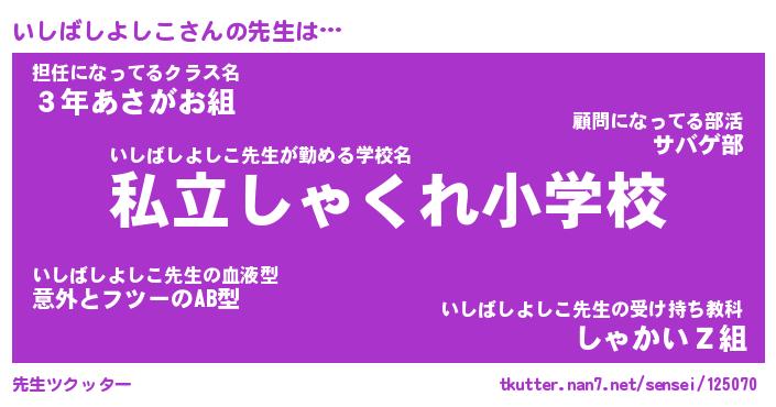 | 伝説のあだ名 | 『伝説のスナイパーいしばしよしこ』 |