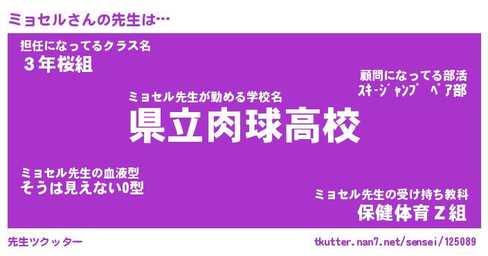 | 意味不明あだ名 | 『ペロリンミョセル』『永久保存ミョセル』 |