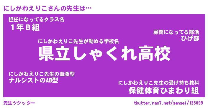 | ポケモン風あだ名 | 『ニシチュウ』『ニシカダネ』 |