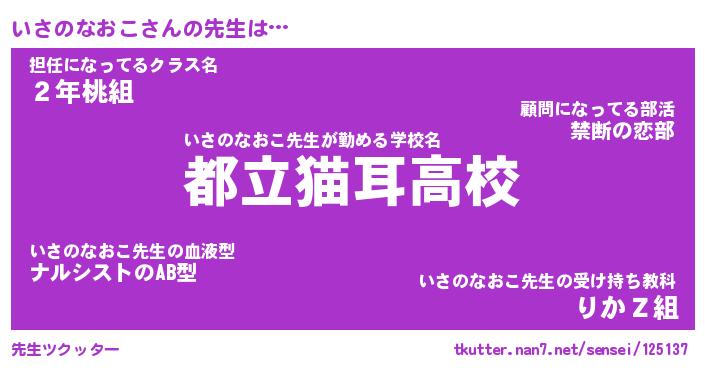 | 肩書あだ名 | 『いさのなおこ社長』『いさのなおこ班長』 |