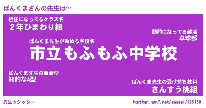 | 意味不明あだ名 | 『ペロリンぱんくま』『永久保存ぱんくま』 |