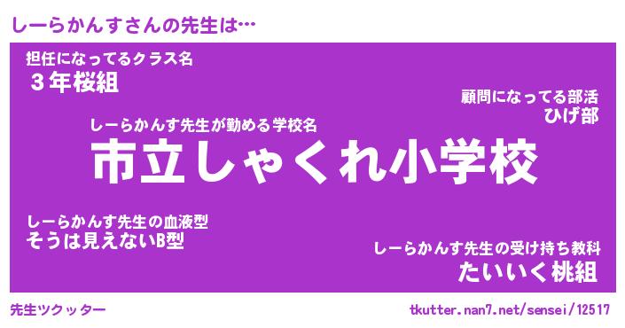 | 伝説のあだ名 | 『伝説のスナイパーしーらかんす』 |