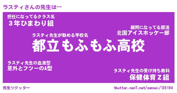 | 意味不明あだ名 | 『ペロリンラスティ』『永久保存ラスティ』 |
