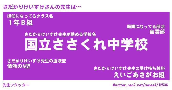 | 伝説のあだ名 | 『伝説のスナイパーさだかりけいすけ』 |