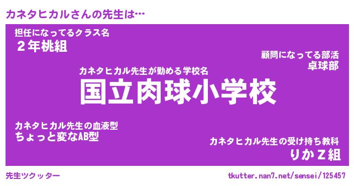 | ヒーロー風カッコイイあだ名 | 『スーパーカネタヒカル』『天弓騎士カネ』 |