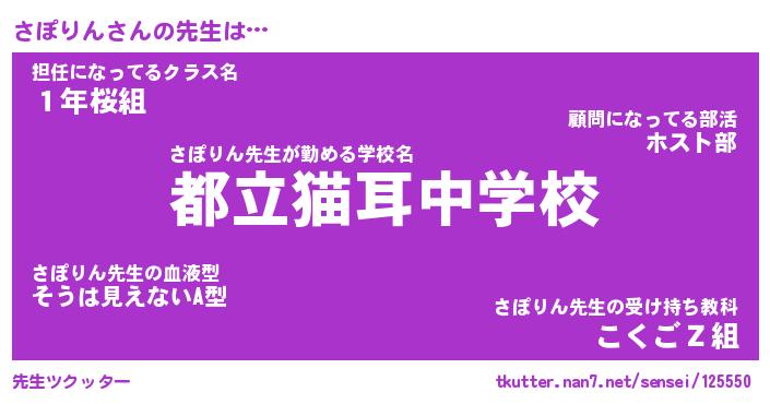 | 意味不明あだ名 | 『ペロリンさぽりん』『永久保存さぽりん』 |