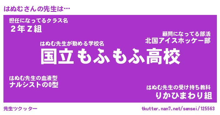 | ファンタジー風あだ名 | 『ハヌフェル』『エターナルハヌムー』 |