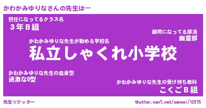 | 胡散臭い通販商品みたいなあだ名 | 『必ず成功する霊験あらたかなお札…その名も「かわかみゆりな」』 |