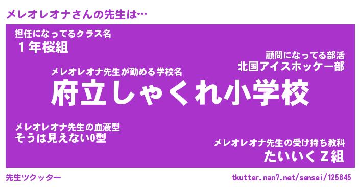 | 伝説のあだ名 | 『封印されしスナイパーメレオレオナ』 |