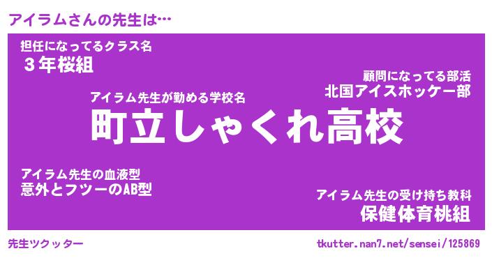 | 伝説のあだ名 | 『封印されしスナイパーアイラム』 |