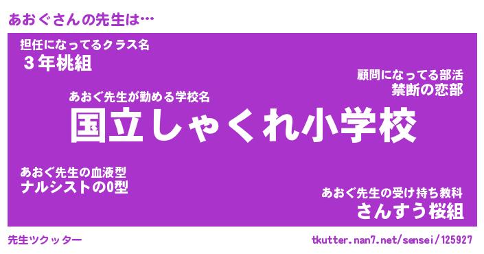 | 意味不明あだ名 | 『ペロリンあおぐ』『あおぐフォーエバー』 |
