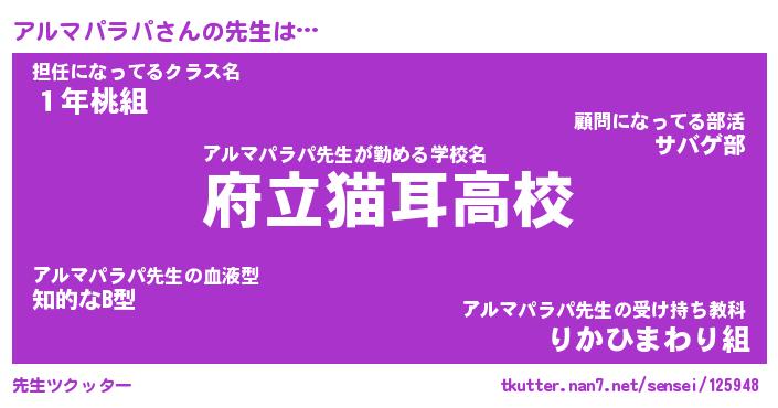 | 肩書あだ名 | 『アルマパラパ社長』『アルマパラパ校長』 |