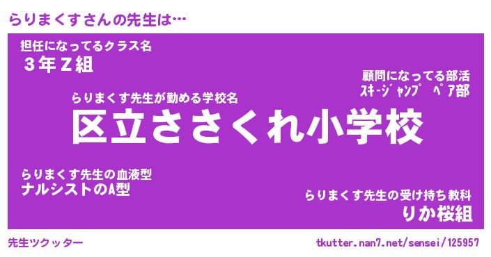 | 伝説のあだ名 | 『封印されしスナイパーらりまくす』 |