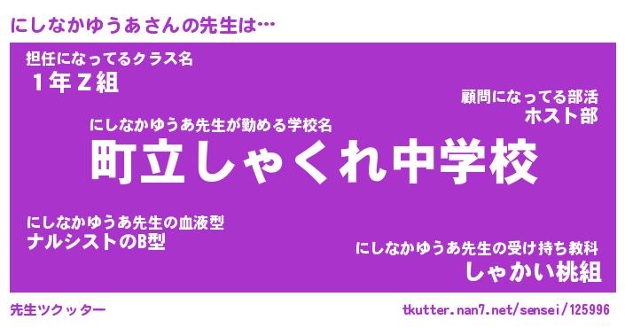 | 肩書あだ名 | 『にしなかゆうあ御曹司』 |