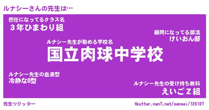 | ヘコむあだ名 | 『ルナふぇ~』『酢こんぶ』『ルナを』 |