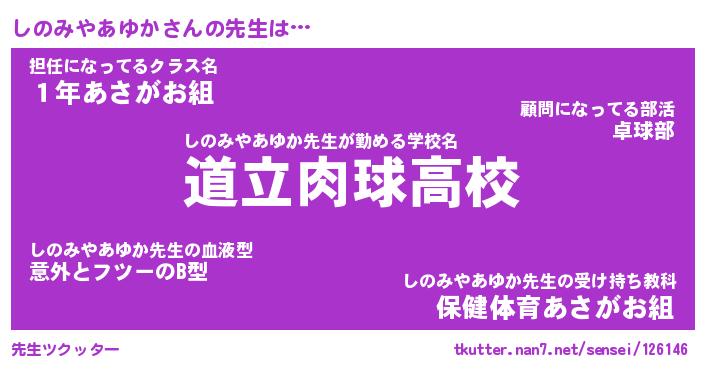 | 恥ずかしいあだ名 | 『プリティーしのみやあゆか』『しのちん』 |
