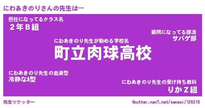 | ヘコむあだ名 | 『にわふぇ~』『なまこ酢』『にわを』 |