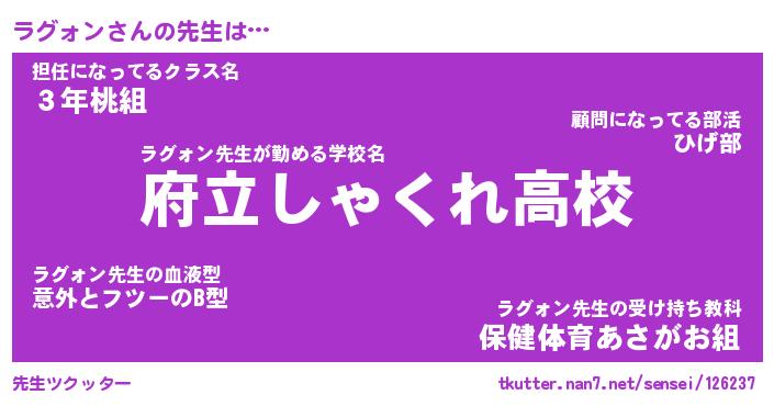 | 意味不明あだ名 | 『ペロリンラグォン』『永久保存ラグォン』 |