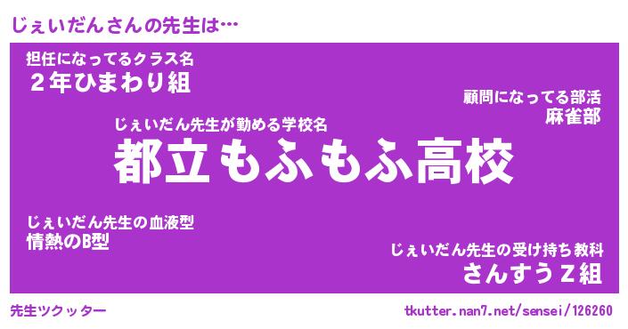 | ヘコむあだ名 | 『じぇにゅー』『豆乳』『じぇを』 |