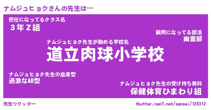 | 胡散臭い通販商品みたいなあだ名 | 『モテモテ間違いなし水晶球…その名も「ナムジュヒョク」』 |