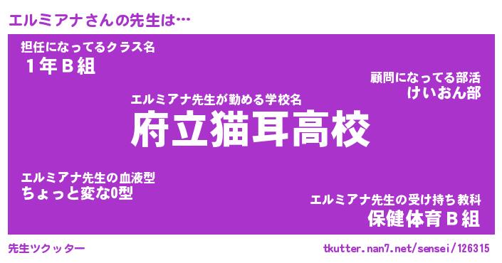 | 肩書あだ名 | 『エルミアナ社長』『エルミアナ総理大臣』 |