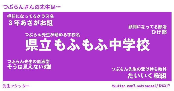 | 意味不明あだ名 | 『ペロリンつぶらん』『永久保存つぶらん』 |
