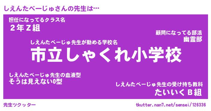 | 伝説のあだ名 | 『伝説のスナイパーしえんたべーじゅ』 |
