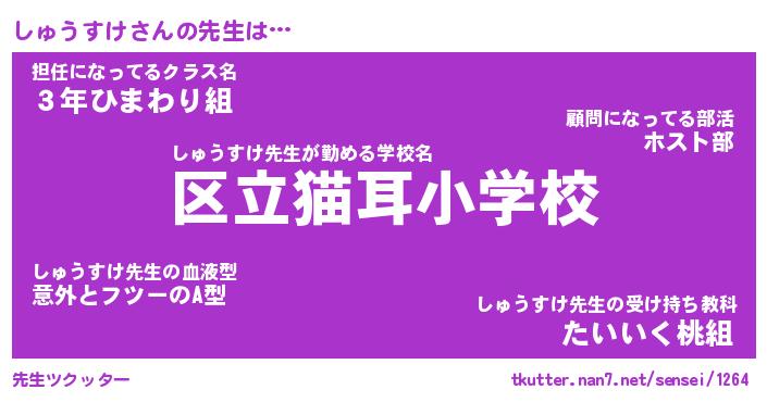 | ヘコむあだ名 | 『しゅにー』『なまこ酢』『しゅ太郎』 |