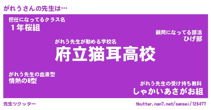 | ヒーロー風カッコイイあだ名 | 『スーパーガレウ』『ウルトラがれうマン』 |