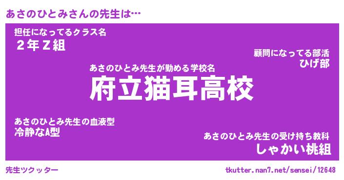 | ヘコむあだ名 | 『あさにー』『豆乳』『あさぷりん』 |