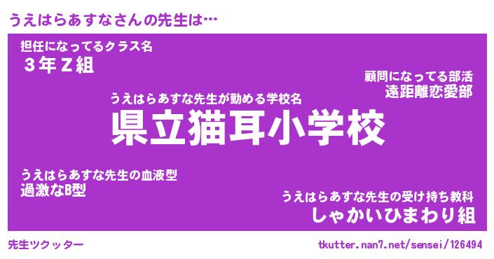 | 自動車の名前っぽいあだ名 | 『プリウエ』『ウクア』『ウント』 |